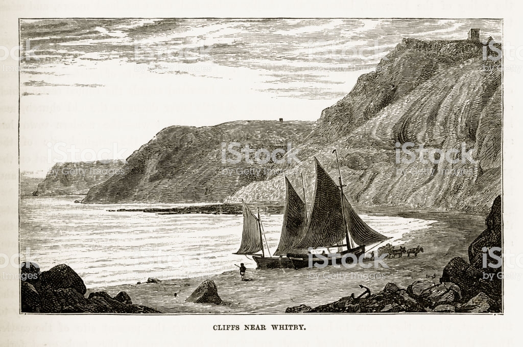 Very Rare, Beautifully Illustrated Antique Engraving of White Cliffs of Whitby in Yorkshire, England Victorian Engraving, Circa 1840 from Our Own Country, Great Britain, Descriptive, Historical, Pictorial. Published in 1880. Copyright has expired on this artwork. Digitally restored.