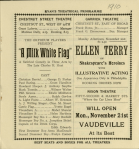 Ellen Terry said Aunt Alice was “a little brick” Dinner on 21st = oysters (blue point) (8 each). Boiled rock bass, sauce, pair of mallard ducks, browned potatoes and salad. Jelly with ice cream. Fruit. (Salad – lettuce, ring of tomato jelly and celery mayonnaise inside).