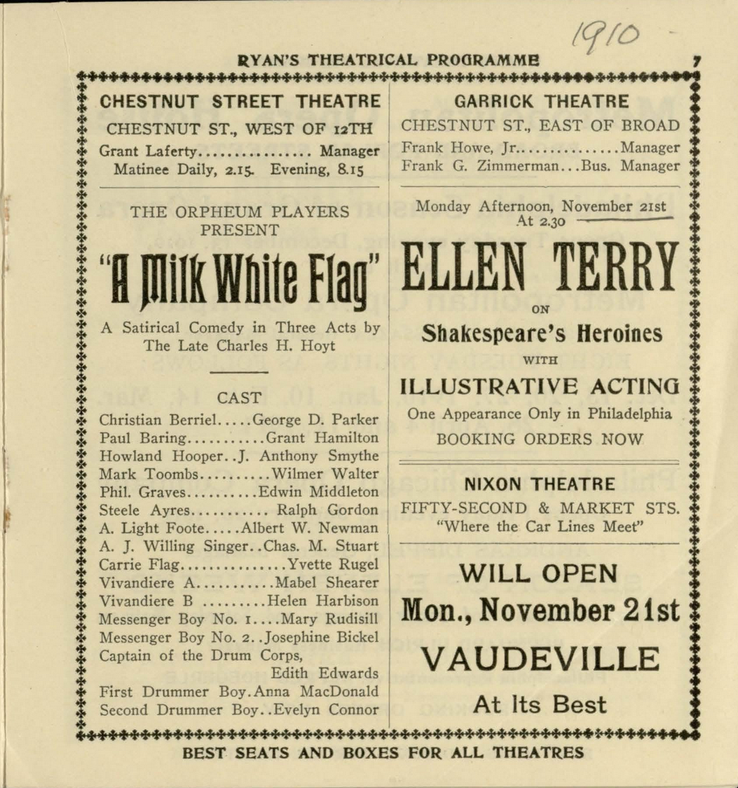 1910 – London, Swanage, Brussels, Berneval-Le-Grand, Southwold, Edinburgh, Newcastle, Oceanic, Philadelphia