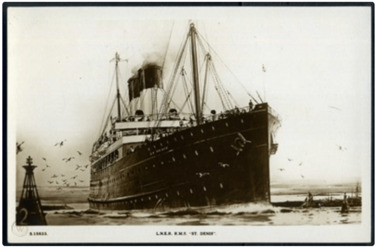 Up at 6.45. Got breakfast 7. Taxi 8.15 to Victoria. To Dover 8.50 – Ostend to Brussels. Nice lady going to Cologne. Lunch on boat “Stad Antwerpen”. Tea on train. Aunt Bella met me. To 616 Chaussée de Waterloo.