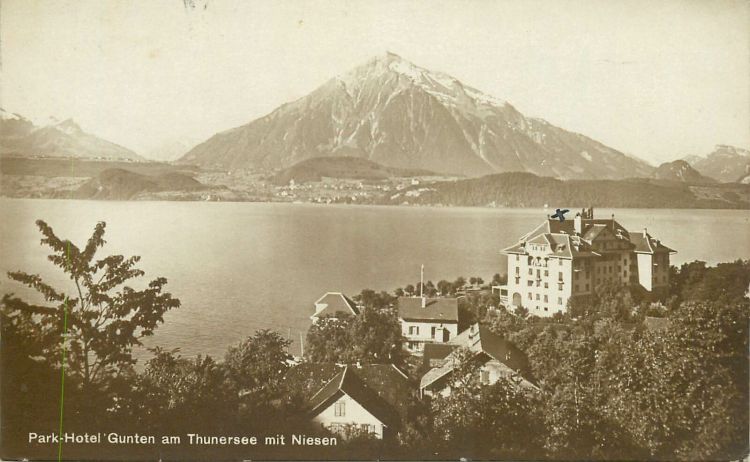 Breakfast on train. Arrive Spiez about 12.15. Out and lunch there 4.50. On 1.20 to Zweisimmen. Changed and tiny train to ourselves to Lenk, arrived about 2. Got skis to fit boots at Goevaerts. Tea. Crowe’s there. Rested. To dinner. To bed 9.15.