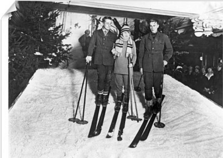 Muddled about washing, trying on Swiss things. Out to Kensington. Lunch at Lyons’ there. Bought frock at Derry and Toms. To Harmar’s for boots (not good) to English Speaking Union. Tea. At 5 to Ski-School – lesson from Myers till 6. Fun. Photo taken by A. Press. Home. Supper. To bed. Knitted cap.