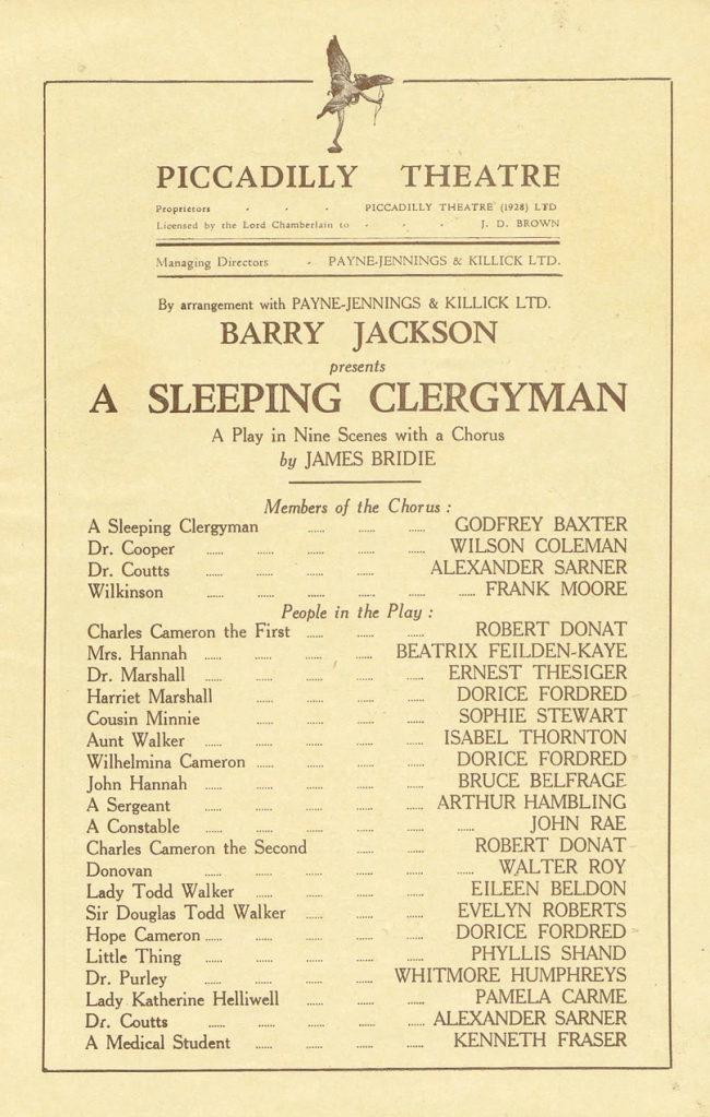 Met Sissie at 11.30, Selfridge’s. Chose frock with her, at Bourne and Hollingsworth. Lunch there too. Then home and out again to Wagon-Lit. Home. Cut out skirt (thick). Supper. To Embassy Theatre “The Perfect Alibi”. Very good. Lois’ pictures there.